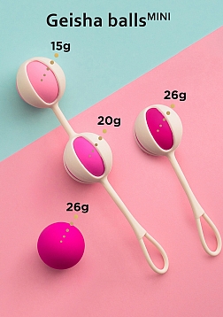 Kegel balls are one of the most popular ways to train the pelvic floor muscles. But besides this, they have many more uses: for example, if you insert and wear balls 20 minutes before sex, the excitement will come faster, and the orgasm will be deeper and brighter! Our Geisha Balls Mini Starter Kit contains 4 balls of different weights – from 15 g to 35 g, and two silicone strings – for one ball and for two. The light weight and reduced ball diameter are perfect for beginners.