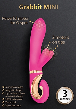 This is a smaller version of our brand's top product Gvibe Grabbit. The Grabbit Mini, just like its older brother, has ears, and it has not 2 motors, but as many as 3! Why is this needed? Not all women enjoy direct stimulation of the clitoral head. Some women, during orgasm, get an unpleasant feeling that caresses are too strong, and touching the clitoris is unpleasant. But if you caress the clitoris on the sides, then the stimulation is more gentle, and in combination with the powerful vibration of the vaginal part of the device, you are guaranteed a deep, long orgasm.