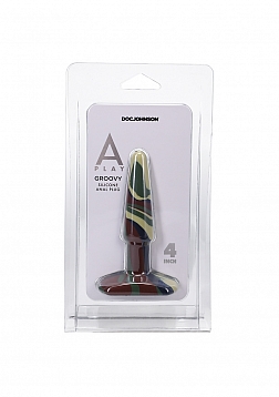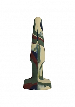 The A-Play Groovy is a soft multi-colored anal plug made of health-grade silicone. Its tapered tip and wide base make for safe, comfortable play, and its firm-yet-flexible feel allows for a little wiggle. Each of the Camouflage-colored plugs is unique and has its own variation of the color pattern.