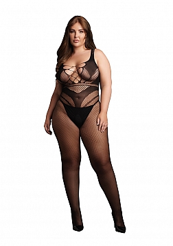 Combo fishnet bodystocking with open crotch and seductive lines that accentuates your curves. The soft super stretchy fabric will fit sizes XL to 4XL.