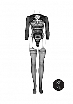 • Bodystocking with Long Sleeves and Short Turtleneck - OS - Black