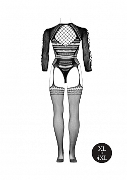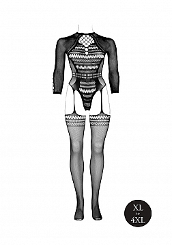 Longsleeve bodystocking with short turtleneck and lines that emphasize the body shape. The soft super stretchy fabric will fit sizes XL to 4XL.