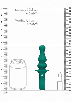 | Dimensions package | 9,20 x 6,10 x 20,50 cm | | Weight package | 180 gram | | Product dimensions | 16,5 x 4,7 x 4,7 cm | | Product weight | 97 gram | | Product diameter | 3,4 cm | | Insertable length | 8,7 cm | | Quantity motors | 1 | | Rotations per minute | 10000 RPM | | Speed modes | 12 | | Multi speed | Yes | | Noise level | 60 dB | | Rechargeable | Yes | | Rechargeable time | 60 min | | Recharged battery lifetime | 40 min | | Splashproof | Yes | | Phthalate free | Yes | | Materials | Silicone, ABS |