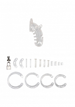 Take your bdsm-play to the next level! Control or be controlled, that’s the question! The Man|Cage Chastity Cages are manufactured from high-grade polycarbonate, a very light, durable and hypoallergenic material. The cage consists of three parts which fit perfectly together. The two guidance pins connect the top parts and the oval taper pin connects the rings with the cage. A variety of rings in different sizes and distance pieces will allow you to create the perfect size! The rings have a comfortable fit and are absolutely safe. A metal lock or tie-wrap lock can easily close the cage. The included tie-wrap locks ensure that they will not trigger the alarm of metal detectors at parties, festivals or even airports! As hygiene is very important while wearing a cage, the superior Man|Cage series are equipped with a variety of vents and a urination opening. The cage makes it impossible to get an erection but it will be, after liberation, super intense, just like the freeing orgasm to follow! The Man|Cage Chastity Cage gives the key-holder optimal power over sexual gratification!