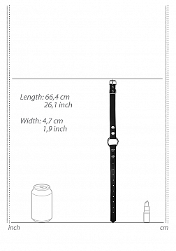 | Dimensions package | 9 x 5 x 16,50 cm |  | Weight package | 182 gram |  | Product dimensions | 66,4 x 4,7 x 3,4 cm |  | Product weight | 125 gram |  | Product diameter | 4,7 cm |  | Inner diameter | 3,5 cm |  | Splashproof | Yes |  | Phthalate free | Yes |  | Specifications | 10 holes in the strap to adjust the length. |  | Materials | 45% PU leather, 55% Metal |