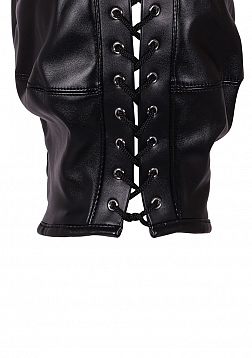 Ready to bring your wildest fetish fantasies to life? Explore this Mask with Blonde Ponytail that keeps your face hidden while leaving your eyes, nose, and mouth exposed for maximum excitement! It comes with a killer long blonde wig attached at the top, giving you that irresistible ponytail effect. Simply slip the hood on and tighten it with the laces on the back. Get ready to embrace the thrilling desire to be tied up as you dive headfirst into a world of pleasure and exploration.
