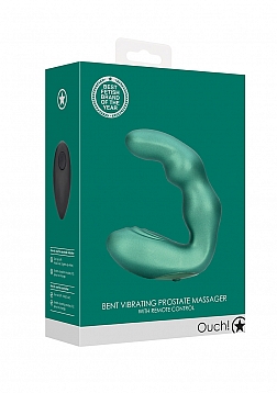 Enhance your pleasure with the Bent Vibrating Prostate Massager. With its unique beaded and slightly bended shape, this metallic green silicone vibrator is specifically designed to provide mind-blowing sensations throughout your entire body. The remote control allows you or your partner to effortlessly navigate through the 10 powerful vibration patterns without interrupting your play. Apply lubricant for a smooth glide. Whether you're a beginner or experienced user, the variety of shapes and sizes available cater to different preferences. Made from body-safe silicone and free from phthalates. Get ready to experience the power of a prostate orgasm with OUCH! Prostate Stimulators.