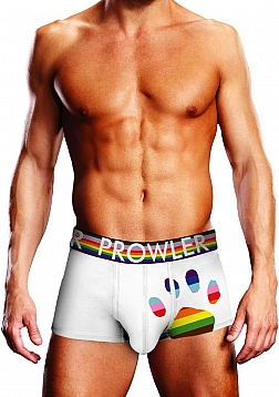 Prowler believes that underwear shouldn't be boring, it should be fun and make you feel sexy. This trunk style will make you feel confident and comfortable wherever you go. Made of skin-friendly fabric that won't ride up or fall, and this trunk features Prowler's signature paw print adorning the crotch, as well as a Prowler logo waistband featuring the Progress Pride flag colors. Offering comfortable coverage, eye-catching detail and a tribute to the diverse LGTBQ+, this trunk is perfect for everyday celebrating.