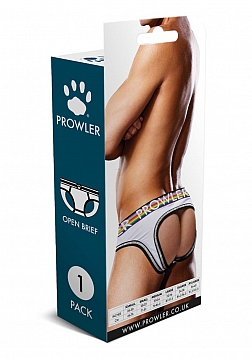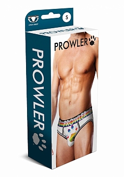 This Prowler open brief is sexy, comfortable, and a great way to show your support for the LGBTQ+ community. Featuring Prowler's signature paw print in the Progress Pride flag colors along with a branded matching waistband, you can wear this anywhere and feel confident and ready to take on the world. The open-back brief keeps you cool when things heat up and shows off your shapely rear. Whether you want to show off your Pride or seduce a partner, this open brief is versatile and fun.