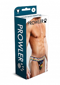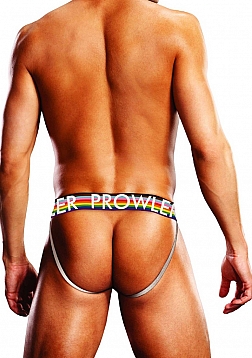 The jockstrap that you've been waiting for is here. The Prowler line of sexy underwear has got you covered with our sexy, black jockstrap featuring the Progress Pride flag's colors along the sturdy waistband and as the color of the signature Prowler paw print that adorns the crotch. The jockstrap is made of a soft, comfortable fabric and features a roomy pouch that will keep you feeling great all day long. Wear this item underneath your clothes or to make a memorable, sensual impression.