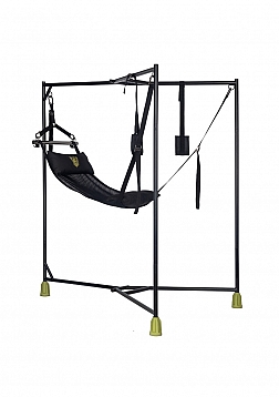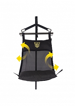 Sling play beats bed bangin' ANY day. Go legs-up, fully supported, in pure BLISS. Launch this E-ticket ride with our FT Hammock Hangar. It all begins with the MOST stable Frame ever built. The FT Unibar vertical supports are SEAMLESSÂ….a point of distinction from other sling frames. This one-piece construction delivers UNMATCHED stability. Our Interlock design, at the top and bottom, provides CORE resilient strength. Ride on a frame that is planted with 3 sure-footed BIG BOOT grips. Experience a rock steady rideÂ…with ZERO distractions. Nestle into our revolutionary MESH hammock for max comfort. The open-weave design BREATHES for long-ridin' comfort. You are supported with TWO ballistic nylon pillows. FT Hammock Hangar is equipped with infinitely adjustable nylon straps + stirrups. Unlike conventional chain supports, these silent assisters deliver a clank-free ride. They adjust to the perfect position in seconds. With it's unique tri-leg design, Hammock Hangar works in the tightest of barracks. It nestles perfectly in corners and requires only 12.5 sq feet (1.2m2 sq meters) of space. It assembles in minutes with no tools required. The hammock and stirrups can be removed for machine washing. Go TACTICALÂ…add new tools to your Hammock Hangar. The Special Ops mirror adds visual eye candy for the sub. The Provision Pod keeps your lube and paper towels within arm's reach. Attach our FT Gunner Fuck Machine with the matching mount and cruise SOLO.