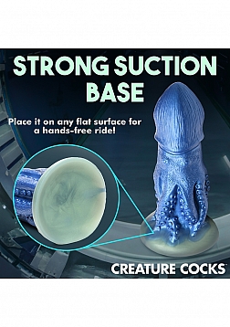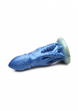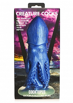 Deep from the ocean depths comes a creature that has come for dark caves and warmer waters. This iridescent blue octopus has eyes on the side of its head, eight tentacles with textured suckes on them, and a bulbous head that has a tapered tip. Take a deep breath and go deep with this girthy dong. Squishy and soft on the outside, it's firm on the inside and is going to fit to your form as you let it slip inside and penetrate you. Made out of premium, phthalate-free silicone, it is body-safe to use with water-based lubricants. The suction up base can be placed on any flat surface for a hands free ocean exploration. Combine it with a strapon harness for couples fantasy roleplay. Include it in kinky cosplay or indulge in hentai tentacle fetish fantasies as you dream of the Fisherman's Wife and her Octopus lover and stretch your limits while slowly sliding this inside! Use it solo or with your partner to spice up your sex life! After use, wash with warm water and mild soap, then spray with a toy cleaner and wipe dry. Keep out of direct sunlight. Store in a cool, dark place. You're floating in the open water. It's a hot day and no one is around. Your friends are sleeping through the morning after a long night of partying on the boat, so you decided to take a dip in the cool waters. Goggles on your face, you take a deep breath and dive deeper. Scanning the depths for fish, something catches your eye. It darts across your field of vision and disappears. What was that? Was it a fish? Was it a shark? Something touches your leg and you panic, swimming quickly up to gasp for air. You calm your breath and then take another deep breath and dunk your head underwater again to look for what it could've been. Your eyes widen as you see a shimmering, blue octopus floating nearby. Its eyes are watching you. Its tentacles slowly float as its large round head expands into a bulb. You're transfixed, enchanted by this rare meeting. It floats closer to you and then, to your utter shock, it reaches its tentacles and winds it around your wrist. You hold still, your heart racing as you feel the suckers tasting your skin. The other tentacle reaches for your waist, then another reaches towards your inner thighs. What is this tingling feeling? Before you can move it releases you and darts between your legs. In confusion you rise up with your head above the water, but you feel the head of the octopus creature writhing against your groin. You want to make it stop, but its head is slippery and its tentacles are strong. Then you gasp as unimaginable pleasure spreads through you as the tip begins to part your hole, the ultra slippery octopus slipping insideĀ