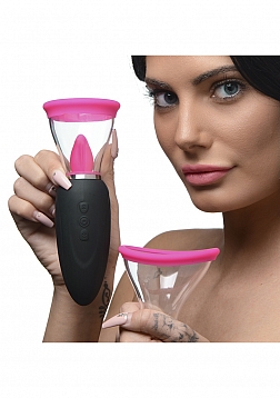 Indulge in pumping, licking and vibration like never before! This mini suction toy comes with 2 different sized cups that fit either the clitoris or a nipple. The clear cup has a smooth, silicone ring that keeps the seal and pressure as it automatically suctions. The toy also has a licking tongue and vibrates with 10 modes of licking and vibration to choose from! Fully rechargeable, it comes with a USB cable to recharge between uses. Made from premium, phthalate-free silicone. Use your favorite water based lubricant on the rim of the cup, the licking tongue, and the erogenous zone of your choice. Turn the toy on and begin to press the cup against your skin to create a seal. Enjoy the gentle suction that pulls your blood towards the surface and increases sensitivity, heightening sensations and pleasure! Play with the licking and vibrating settings until you find the perfect setting for you! After use, wash the toy with warm water and soap then spray with a toy cleaner and wipe dry.