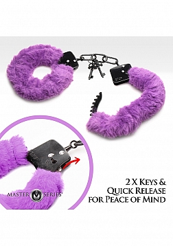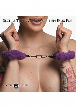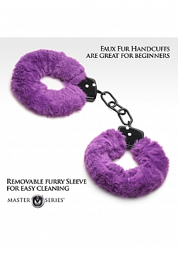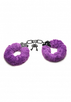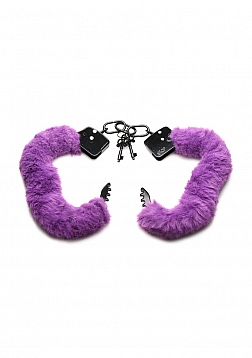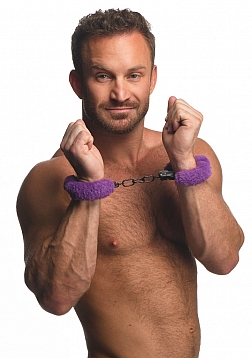 These furry, purple cuffs are soft and sensual against your lover's wrists. The strong, metal cuffs inside won't cut into their delicate skin. Instead you have the padding of this faux fur, artificial wool! The cuffs are fully adjustable and close as tight as 4.5 inches and open wide to a 7 inch circumference. Included with the cuffs are 2 keys so you always have a spare! To clean, simply spot clean the wool with warm water and soap and a washcloth, then let dry.