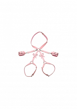 <h3>Key Features:</h3> <li>Beautiful Bondage: Enjoy how this harness restrains your waist, thighs and wrists with straps and wrist-cuffs. Added to the design are little bows that accent the backs of your thighs!</li> <li>PU Leather: Made out of vegan-friendly, durable, PU faux leather. Spot clean as needed.</li> <li>Adjustable Buckles: All straps are adjustable via the buckles and holes.</li> <li>Nickel-Free Metal: Metal used is nickel-free and body-safe.</li>