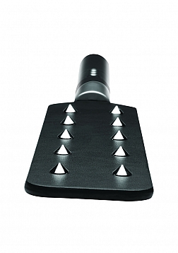 Add some bite to your spanking sessions with this E-stim Spiked Paddle! It has 10 spikes on one side that will bite into your partner's juicy flesh like little teeth. They won't break the skin, but they will leave a memorable sensation. Flip it over to the flat side and rub their behind to cool them down. Then amp up the intensity again by turning on the electrostimulation! Choose between two different intensities and enjoy as they get shocked by the conductive spikes! The paddle is covered in vegan-friendly, faux (PU) leather and the metal is made out of nickel-free, zinc alloy. The e-stim paddle is rechargeable. Simply use the USB cable provided. Keep away from water.