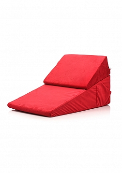 Try out positions until you find the perfect one! These comfortable pillows are versatile and designed to be used inc creative and playful ways. You can place the large pillow flat against a bed, couch or the floor. Choose somewhere that is comfortable for you and your partner to play on but that needs more cushion. Lay back against the tilted large wedge and place the small wedge beneath your head for more neck support. You can look your lover in the eyes as you enjoy being face-to-face. Bring the small wedge beneath your hips with the pointed end under your pelvis to support your hips. This can help level the pillows to a more horizontal position. Face down on the large wedge and use the small wedge beneath your hips so your booty is up and your knees are supported for a version of Doggy style pose. You can also drape your body over the large wedge for a different angle and use the small wedge to support your chest or head as you bend forward.