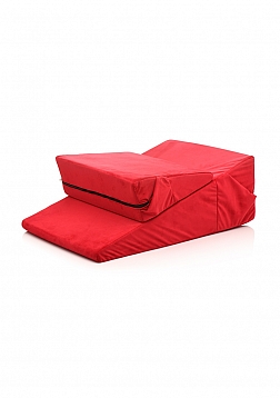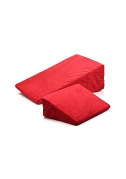 Hitting that sweet spot has never been easier with high density, velvety wedges that you can position for your pleasure! What seems like two simple wedges create countless possibilities only limited by your creativity. Use these to elevate the hips, cushion knees and elbows, lean back on and enhance sex in new ways! What seemed difficult or uncomfortable before can now be easy and orgasmic. Their soft outer cover lets your body slide against it smoothly into each pose and the water-resisitant inner cover protects the foam from moisture and spills. The sides of each pillow also have a pocket that you can tuck small toys in for easy access! After playing, simply strip off the velvety outer cover and the water-resistant inner cover and machine wash them!