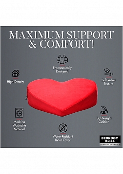 A little lift goes a long way with this heart shaped pillow! Made of high-density foam and covered in a velvety soft outer layer and a water-resistant inner layer, it's firm enough to lift you up and has enough softness to keep it sexy. Use it under your shoulders, chest, head, hips or knees to change the way you play! Both inner and outer pillow covers are machine washable, too! The soft outer layer keeps it sexy and sensual as your skin brushes against the fabric while the water-resistant, inner layer keeps your foam pillow moisture free!