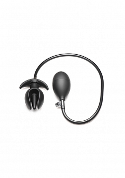 Inflatable Silicone Plug: This anchor-shaped anal plug can be pushed inside while less than 2 inches in diameter and 3 inches long and then inflated to approximately 5 inches deep by 5.5 inches wide!