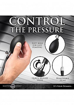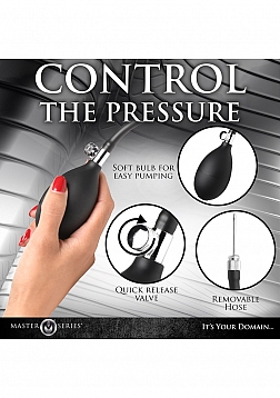 Once you've got the plug inside, use the bulb to pump up the plug. As it inflates, take your time and go slow. The hose has a built-in quick-release valve that lets you control pressure decrease; you can choose to deflate fast or slow! Use plenty of water-based lube on the premium silicone plug and enjoy how it presses against the sensitive nerves and erogenous zones inside you. Pressure may build and push against the A-spot or P-spot giving you even more extreme pleasure as you play with yourself or a partner!