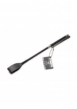 Add a sturdy crop to your collection and always have a wicked tool on hand for spankings and kinky play! This riding crop delivers a sharp and certain bite for when you want to kiss your partner with a touch of delightful pain. Made out of vegan friendly leather, this crop has a textured grip that helps you keep your grip as you play. The firm rod at the center is made of a glass fiber that is firm with enough flex to handle impact. The triangular end is perfect or precise and specific impact play. To clean, spray with a toy cleaner or a mixture of alcohol and water. Bend them over after some teasing and negotiation. Warm up their behind with a few spankings and floggings. When they're ready, start to tap them lightly with the triangle end of the crop. Each impact is precise and stings ever so slightly. Begin to go harder and harder, their skin flushing red, until they've had enough. Rub the spots where you hit them, then continue again when they're ready for more!