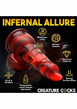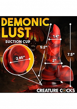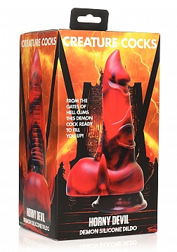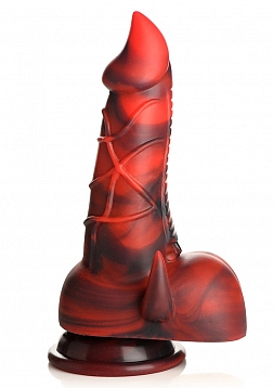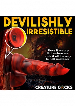 Key Features: Fantasy Dildo: This red and black Devil dildo has a fat shaft, tapered tip, popping veins, a shield like plate on one side to add texture and end in a row of teeth, and two little horns that sit on either side of a pair of big, round balls. Suction Cup Base: Enjoy the wide, suction cup base of this dildo. Simply press firmly on any flat surface and enjoy riding it hands-free! Harness Compatible: The wide, flanged base is compatible with most strap-on harnesses so you or a partner can wear the dildo and bring the fantasy fully to life! Premium Silicone: Made of body-safe, phthalate-free, premium silicone.