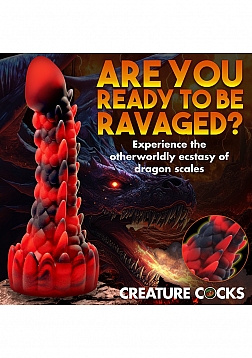 Demon Rising - Scaly Dragon Silicone Dildo - Red/Black