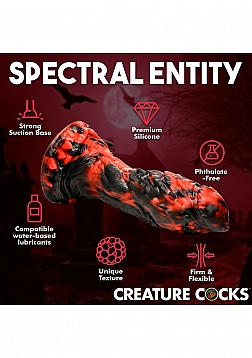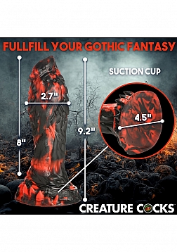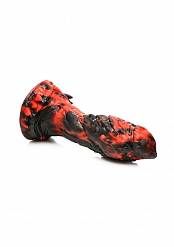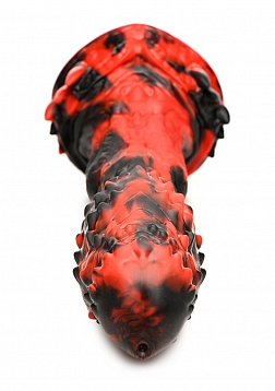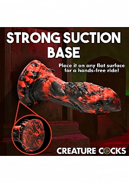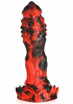Note: use only with water-based lubricants. Key Features: Fantasy Dildo: This red and black dildo is thick, menacing, and textured with bumps, ridges, grooves and spiked nubs. Suction Cup Base: Enjoy the wide, suction cup base of this dildo. Simply press firmly on any flat surface and enjoy riding it hands-free! Harness Compatible: The wide, flanged base is compatible with most strap-on harnesses so you or a partner can wear the dildo and bring the fantasy fully to life! Premium Silicone: Made of body-safe, phthalate-free, premium silicone.